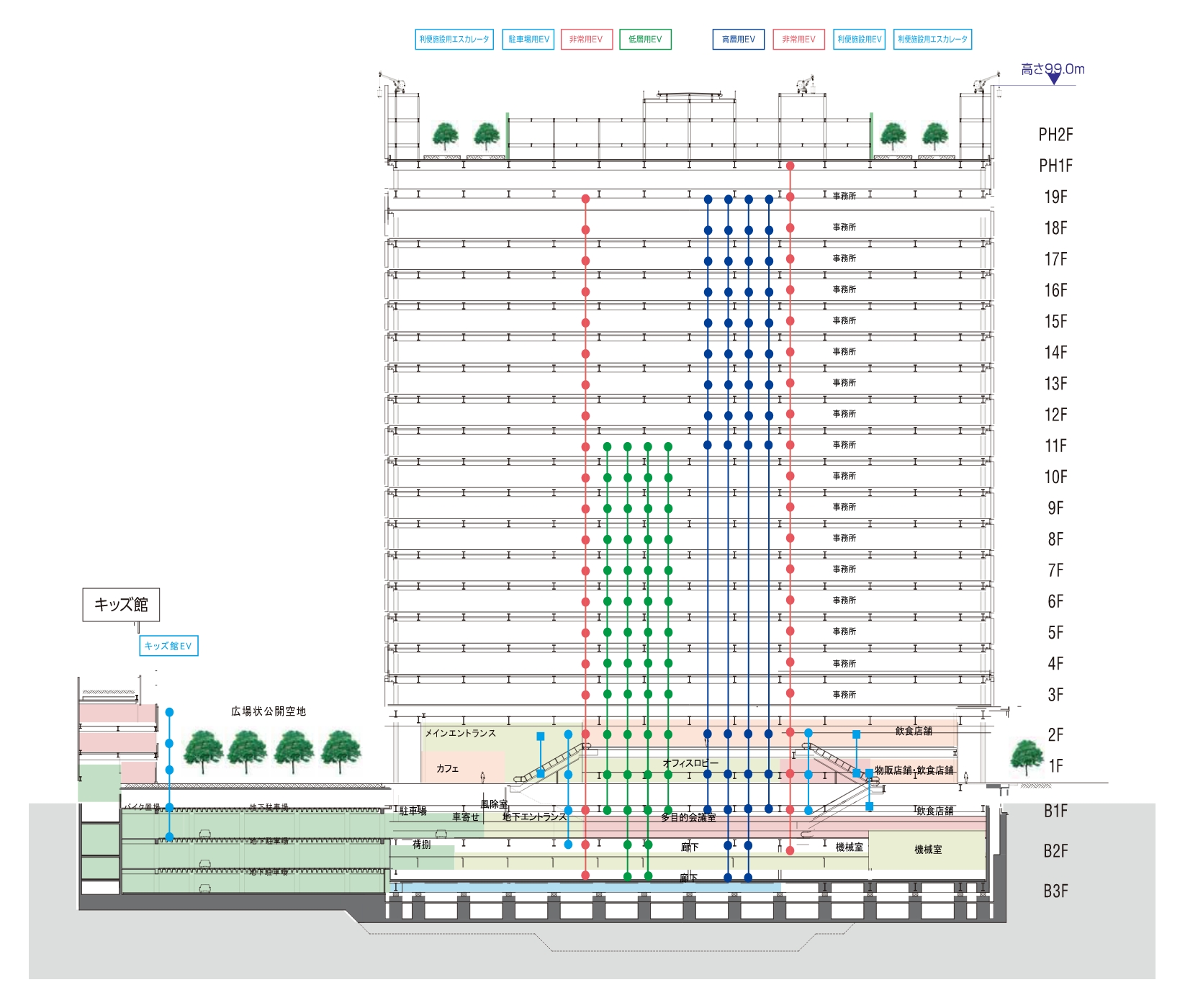 | 空調 | 基準階ゾーン別空調機+VAV(可変風量)方式 |
