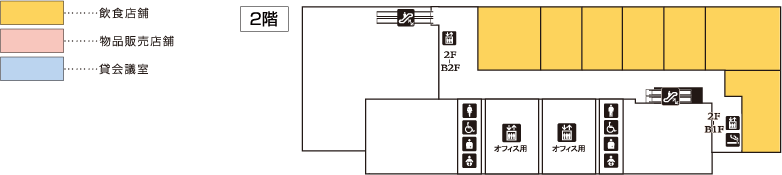 2階から地下1階には約10店舗の飲食・物販店舗をご用意。ランチから宴席まで幅広く対応します。