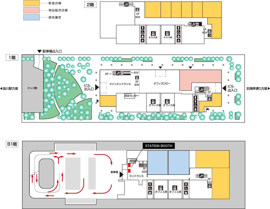 B1Fから2Fのフロアには個性的な飲食店やドラッグストアなどの施設が集まっており、この街で働く人、住む人、訪れる人たちに心地よい都市生活を提供しています。