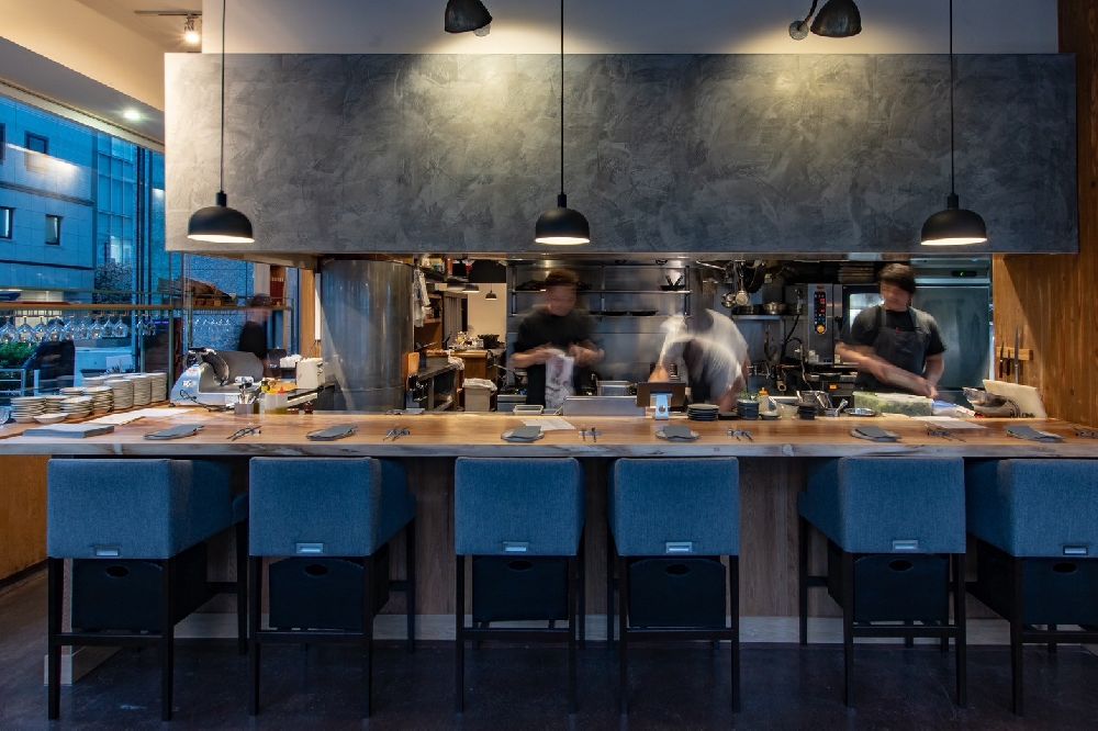 オープンキッチンとガラス張りの開放的な空間には、ゆったりとお楽しみいただけるお席もご用意しております。
